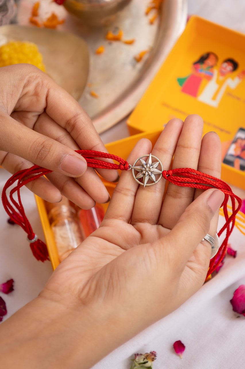 Our Moh Compass Wanderlust Rakhi captures the explorer's guiding spirit and transforms it into a beautiful celebration that honours the unwavering direction found in sibling relationships.