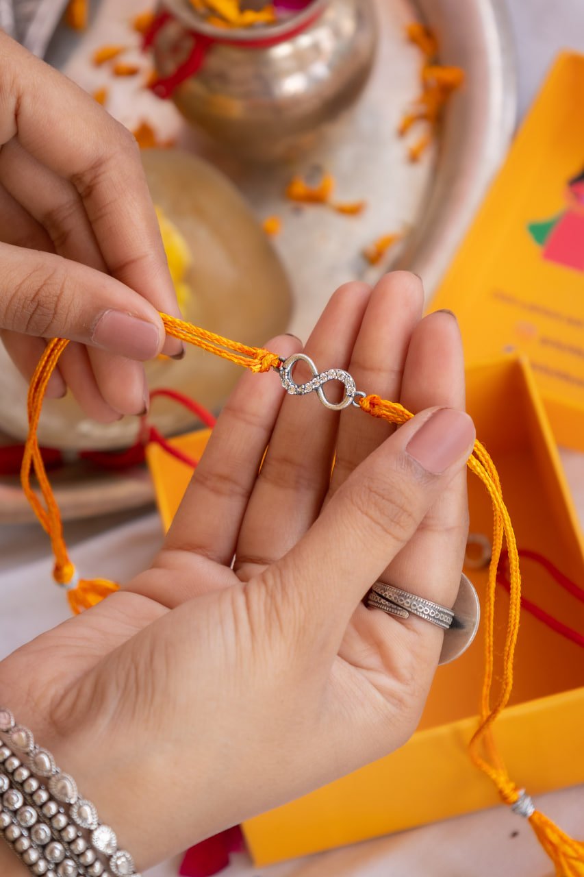 Our Adya Infinity Knot Fine Rakhi captures the essence of eternal connection and transforms it into a beautiful celebration that honours the boundless love found in sibling relationships.