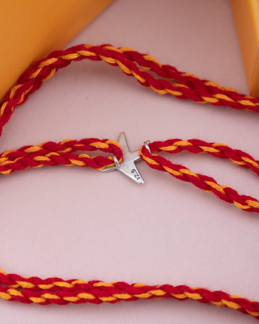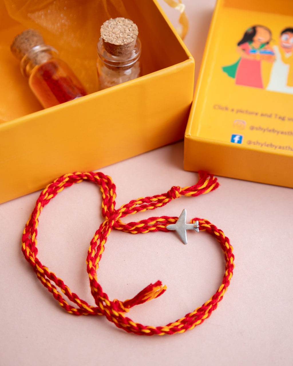The Aeroplane Rakhi soars with a playful spirit, symbolising adventure, freedom, and the high-flying bond of love.