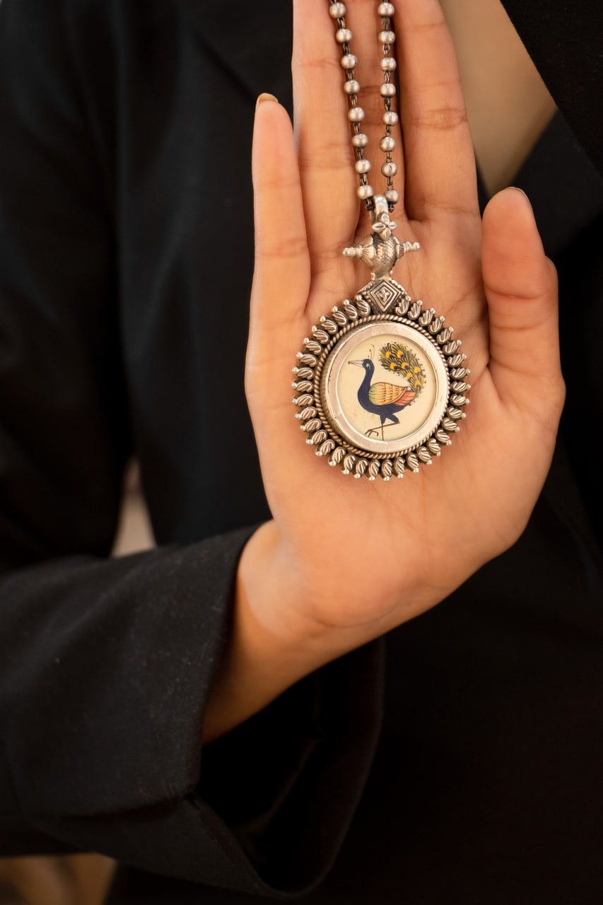 An exquisite piece of Moh Handpainted Peacock Pendant