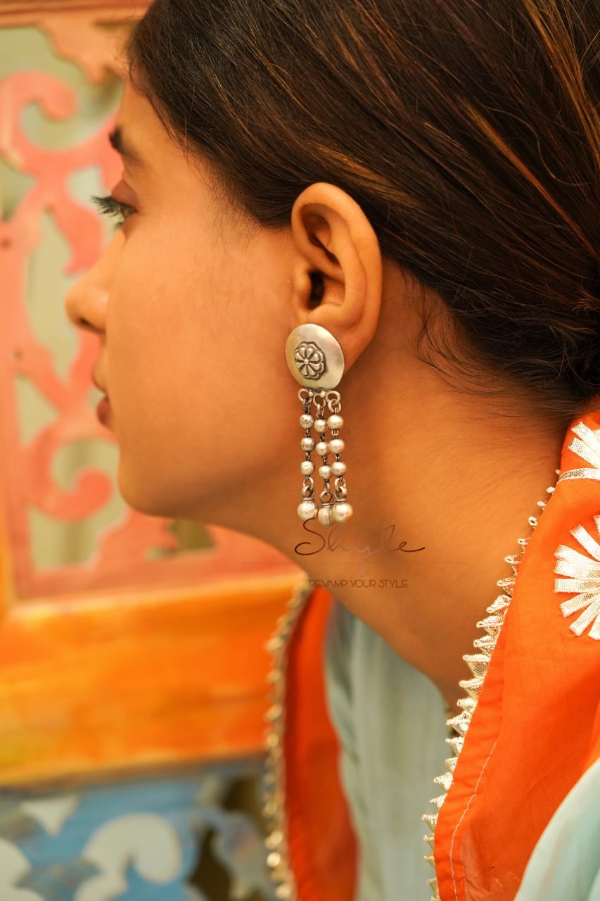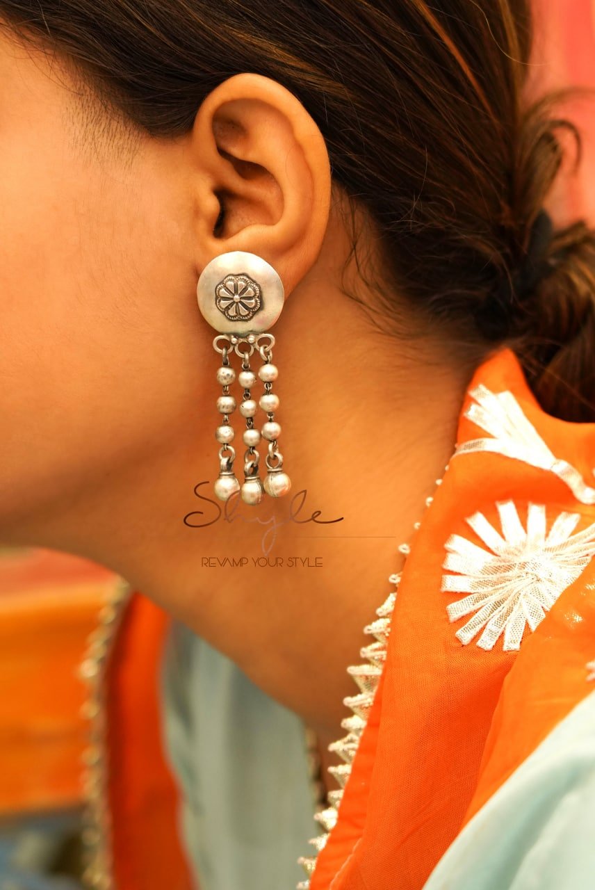 💎 Oxidized Silver Earrings – Perfect for a vintage, boho-chic aesthetic.
