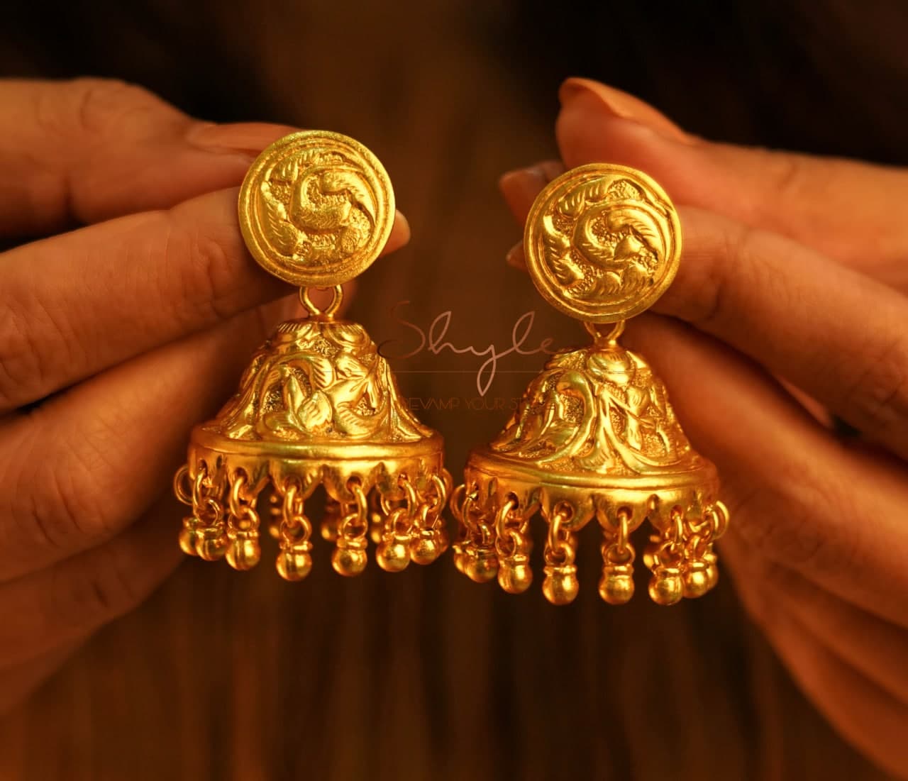 Moh Peacock Motif Embossed Classic JhumkiMoh Peacock Motif Embossed Classic Jhumki