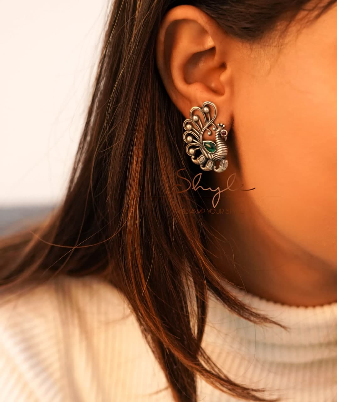 Adya Embossed Peacock Motif Intricate Stud EarringAdya Embossed Peacock Motif Intricate Stud Earring
