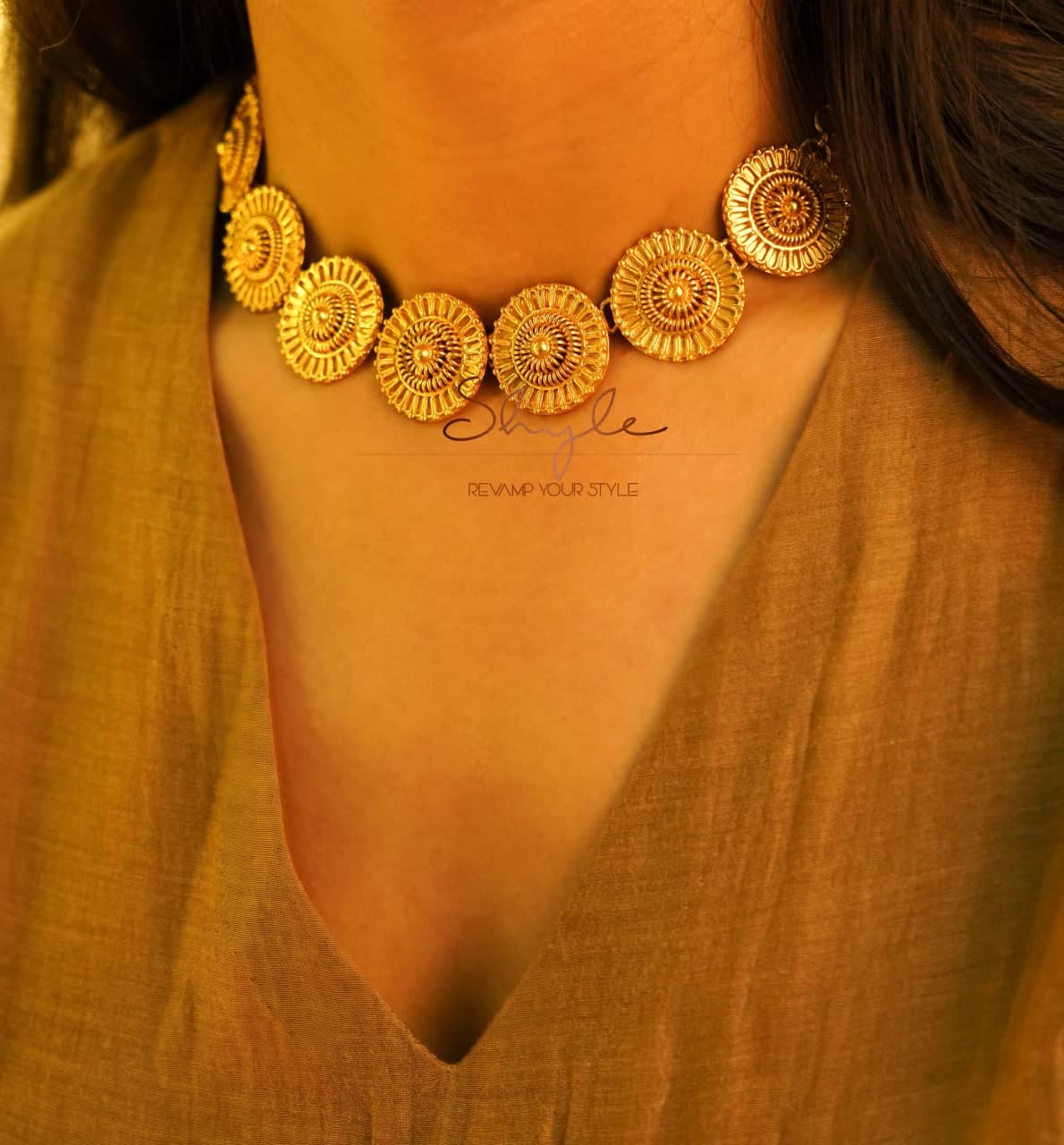 Tattva Tribal Motif Gold Layered Classic Ball Necklace