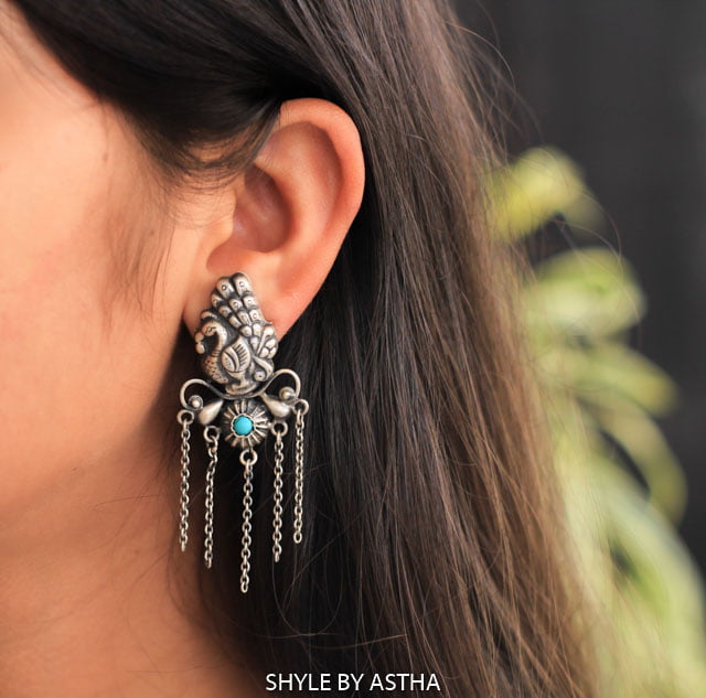An Amazing pair of Adya Detailed Peacock Earrings