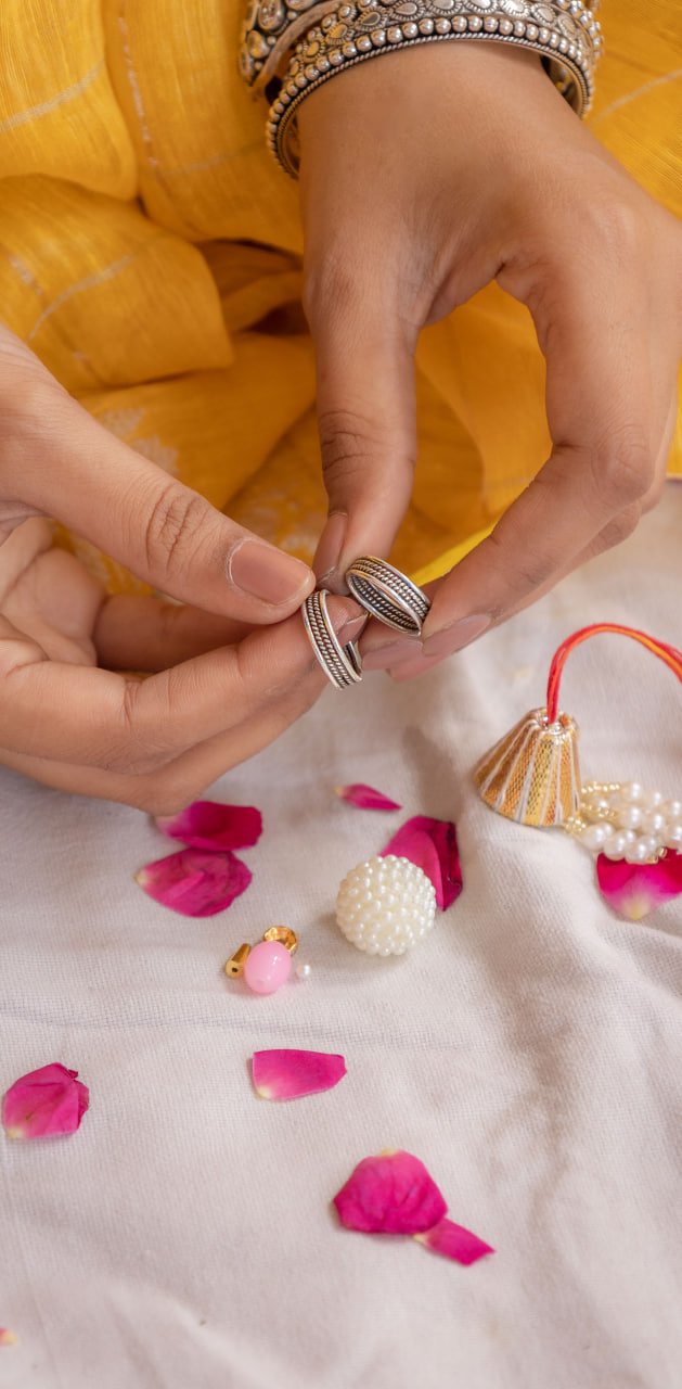 Our Adya Everyday Toe Ring Pearl Drop Lumba Rakhi captures daily elegance in a versatile 2-in-1 design, celebrating the timeless grace found in the special nanad-bhabhi relationship while doubling as a beautiful toe ring for everyday wear.
