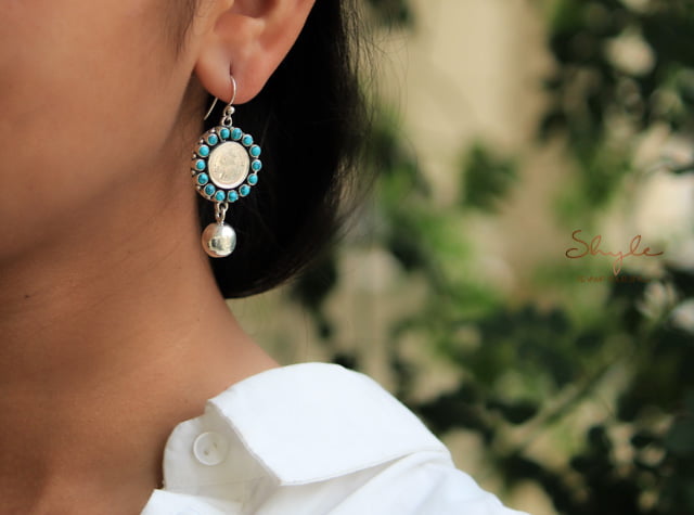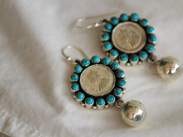 An amazing pair of Adya Victorian Coin Turquoise drop earrings