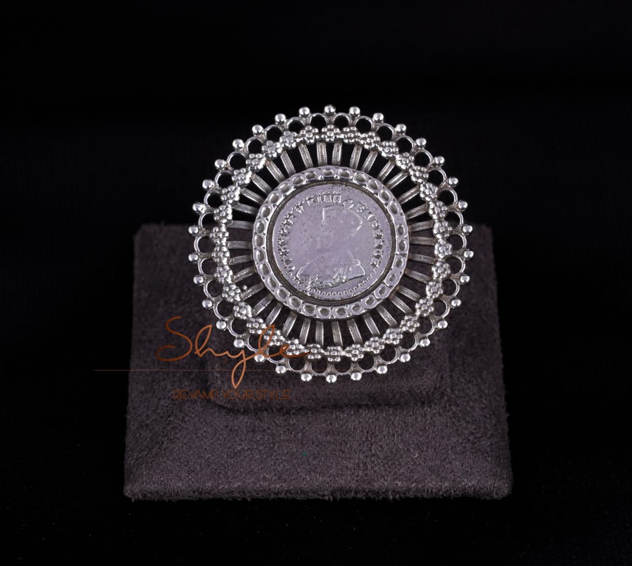 An amazing Anvaya Finely Carved Victorian Coin Ring.