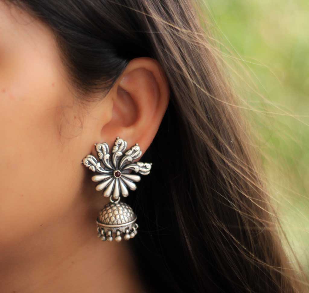 An amazing pair of Anvaya Mini Parrot Motif Quirky Jhumkis