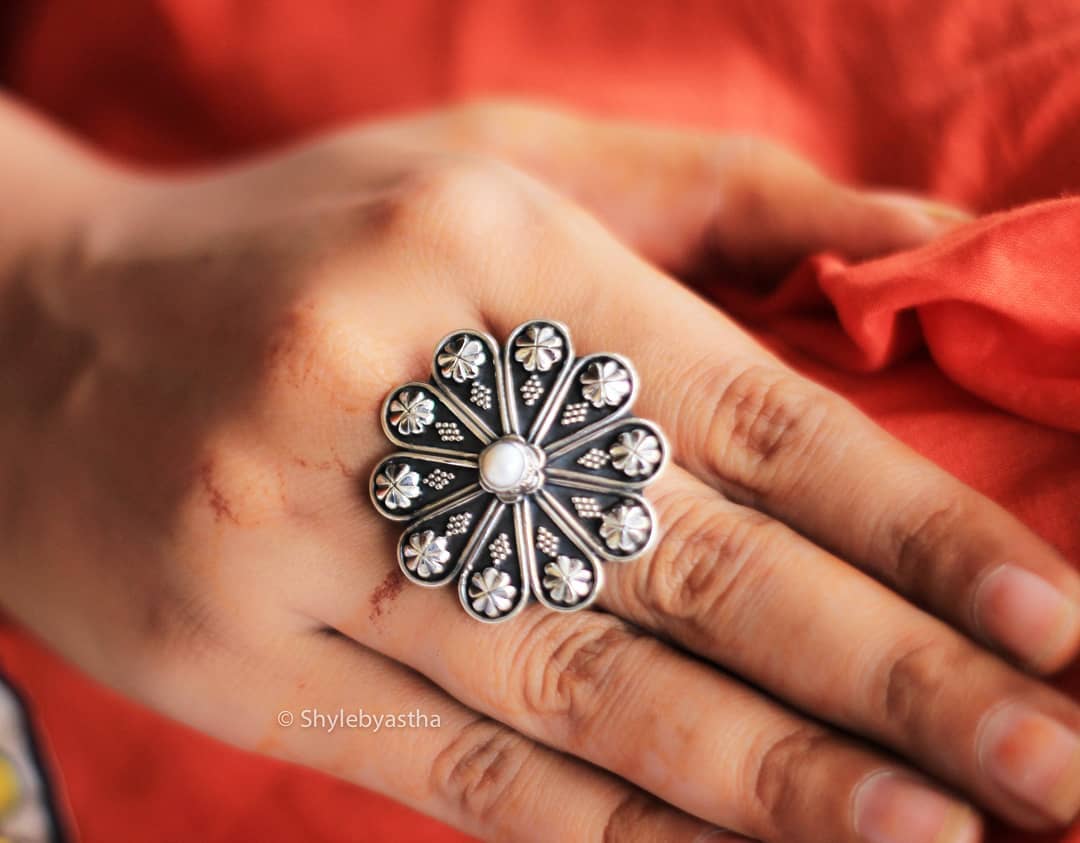 An amazing Anvaya Pearl Studded Floral Art Ring.