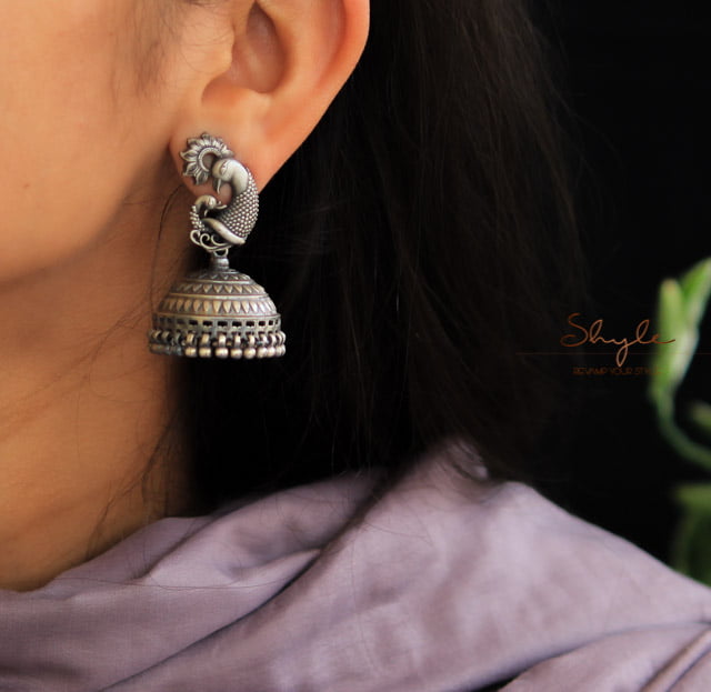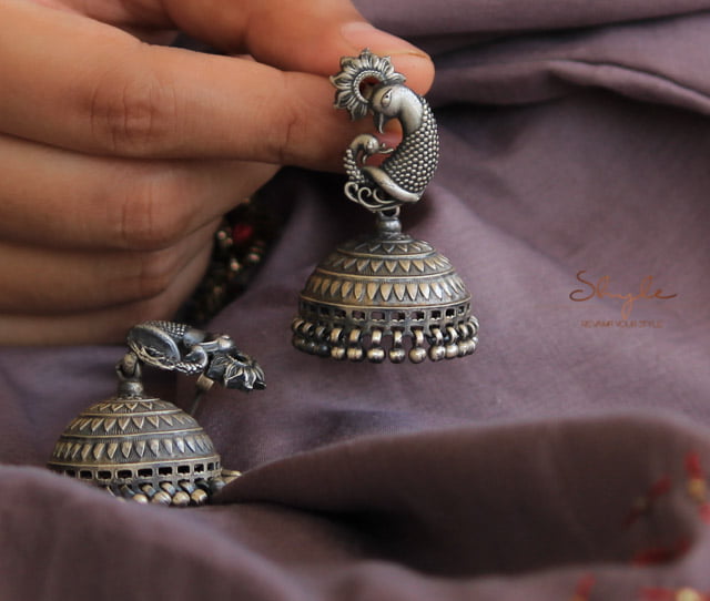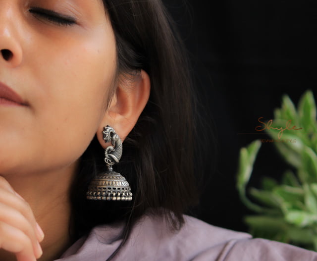 An Amazing pair of Dulari Peacock Motif Sequence Art Jhumka