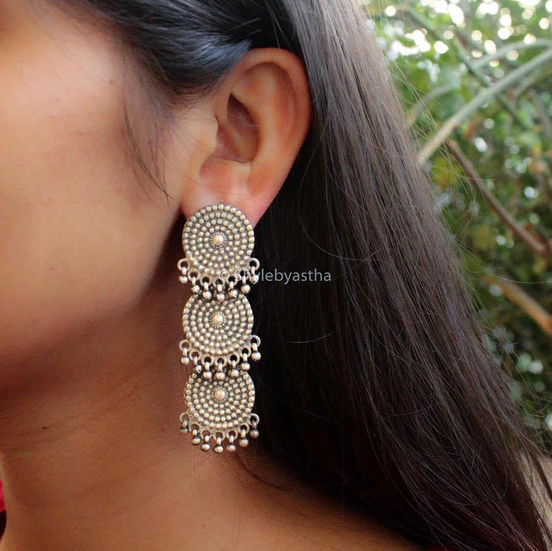 An amazing pair of Dulari Concentric Daana Detailed Layered Earrings