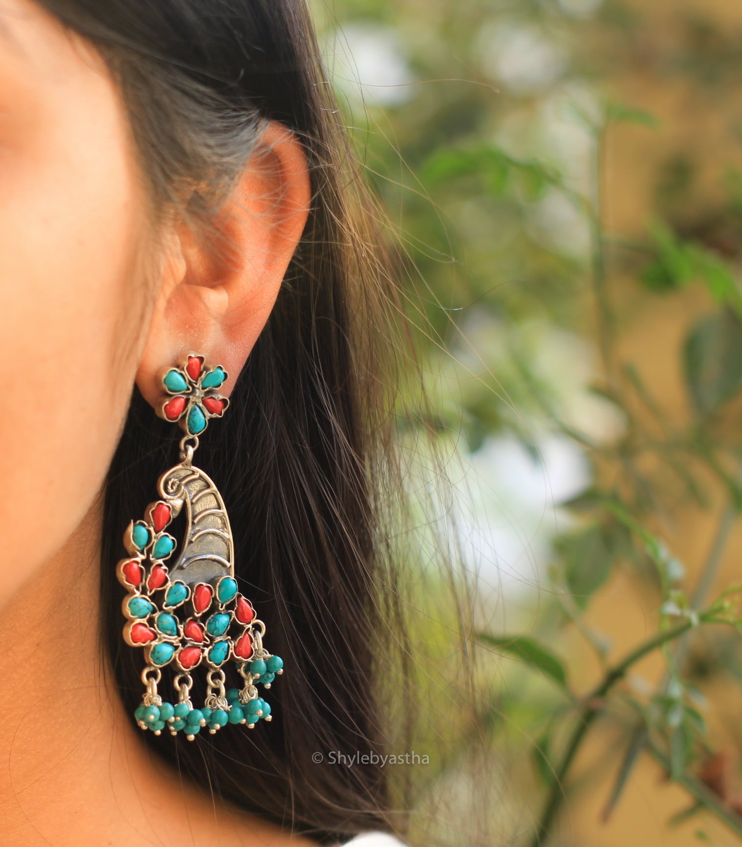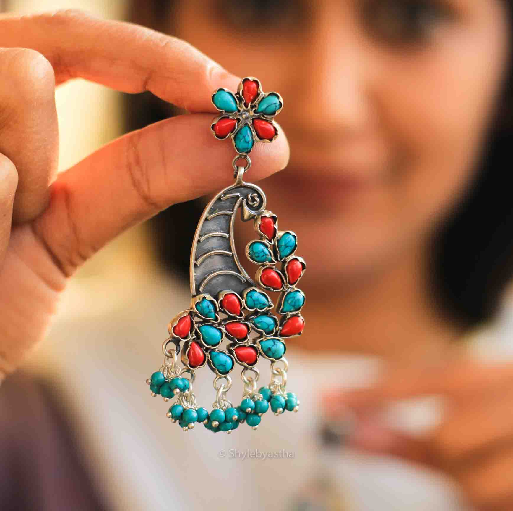 An amazing and unique pair of Dulari Turquoise Coral Peacock Earrings