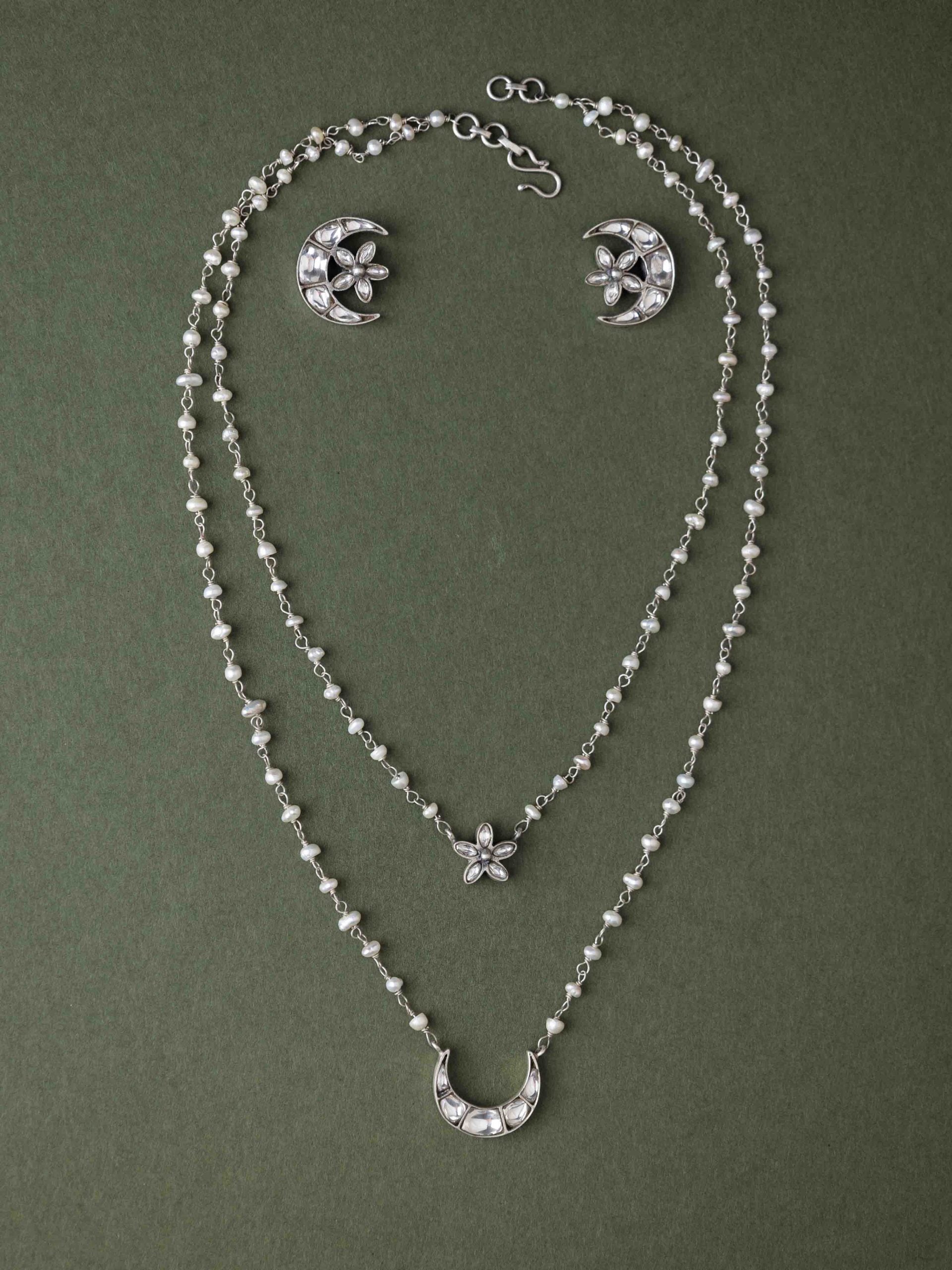 Essence Kundan Chaand Phool Moti Necklace Earring Set