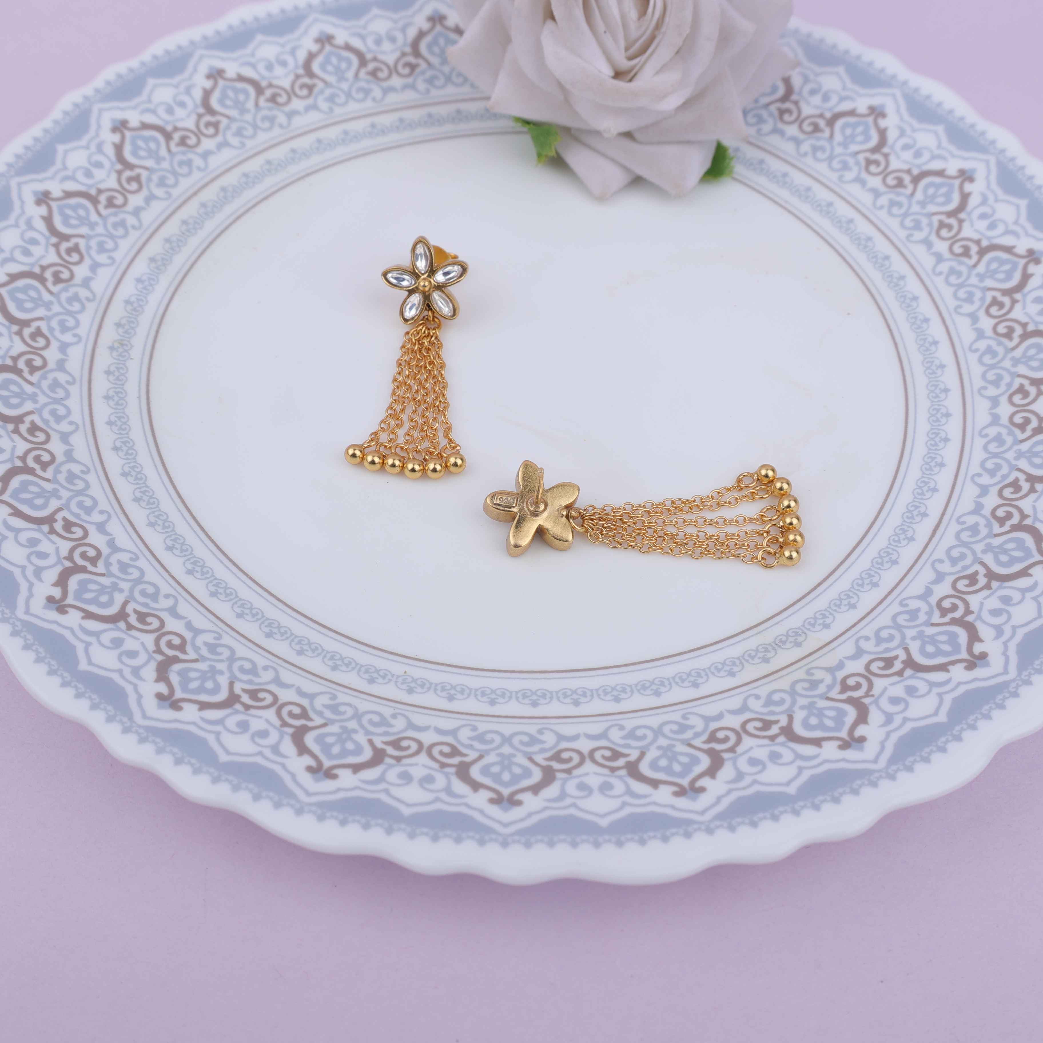 Essence Kundan Flower Chain Drop Gold Plated Earring