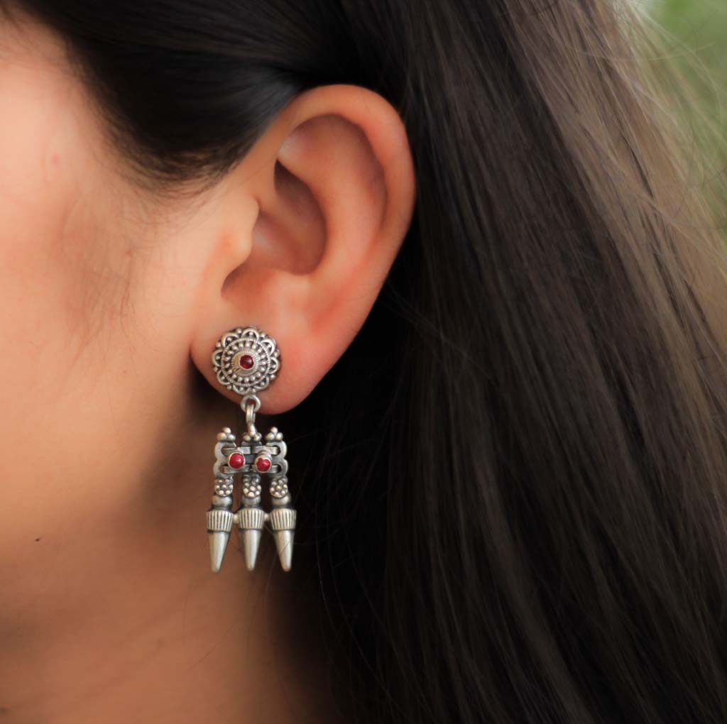 Essence Ruby Studded Trishul Earrring