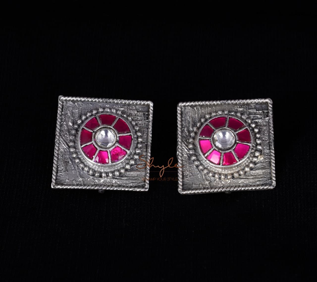 An Amazing pair of Essence Square Motif Kundan Pearl Statement Choker Set