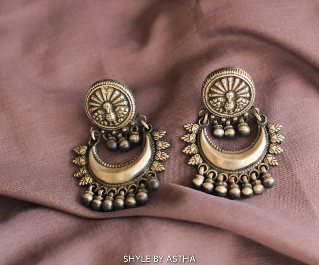 THE SHYLE TIP : The Mizoya Dancing Peacock Motif Ghughri Earring is designed to be a showstopper. Their rich detailing and substantial presence make them perfect for complementing grand ethnic outfits like heavy silk sarees, elaborately embroidered lehengas, or ornate Anarkali suits. They are ideal for weddings, major festivals, or any occasion where you want to make a truly regal and unforgettable impression. For a more subtle yet impactful look, pair them with a solid-colored, minimalist ethnic outfit to let the intricate craftsmanship truly shine.