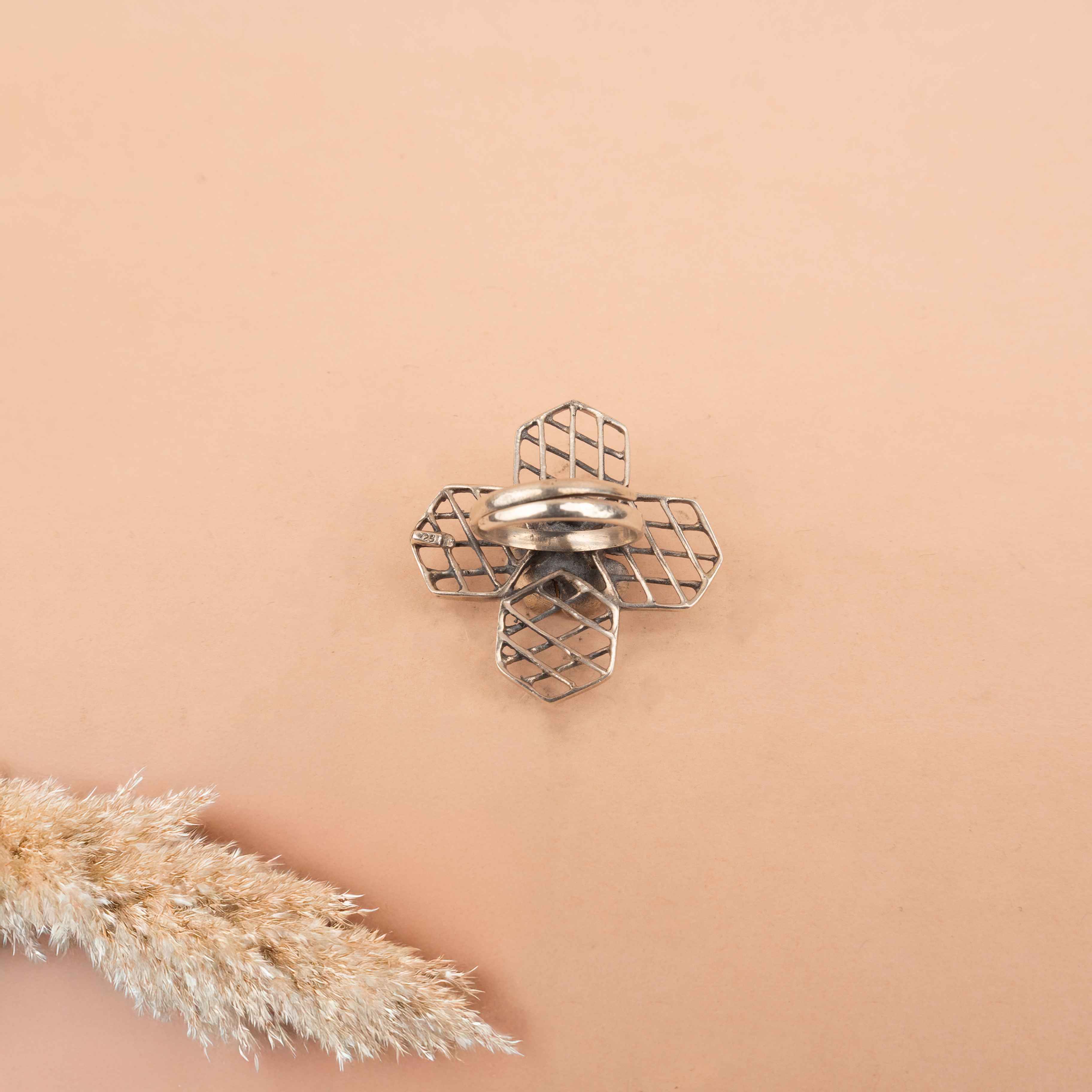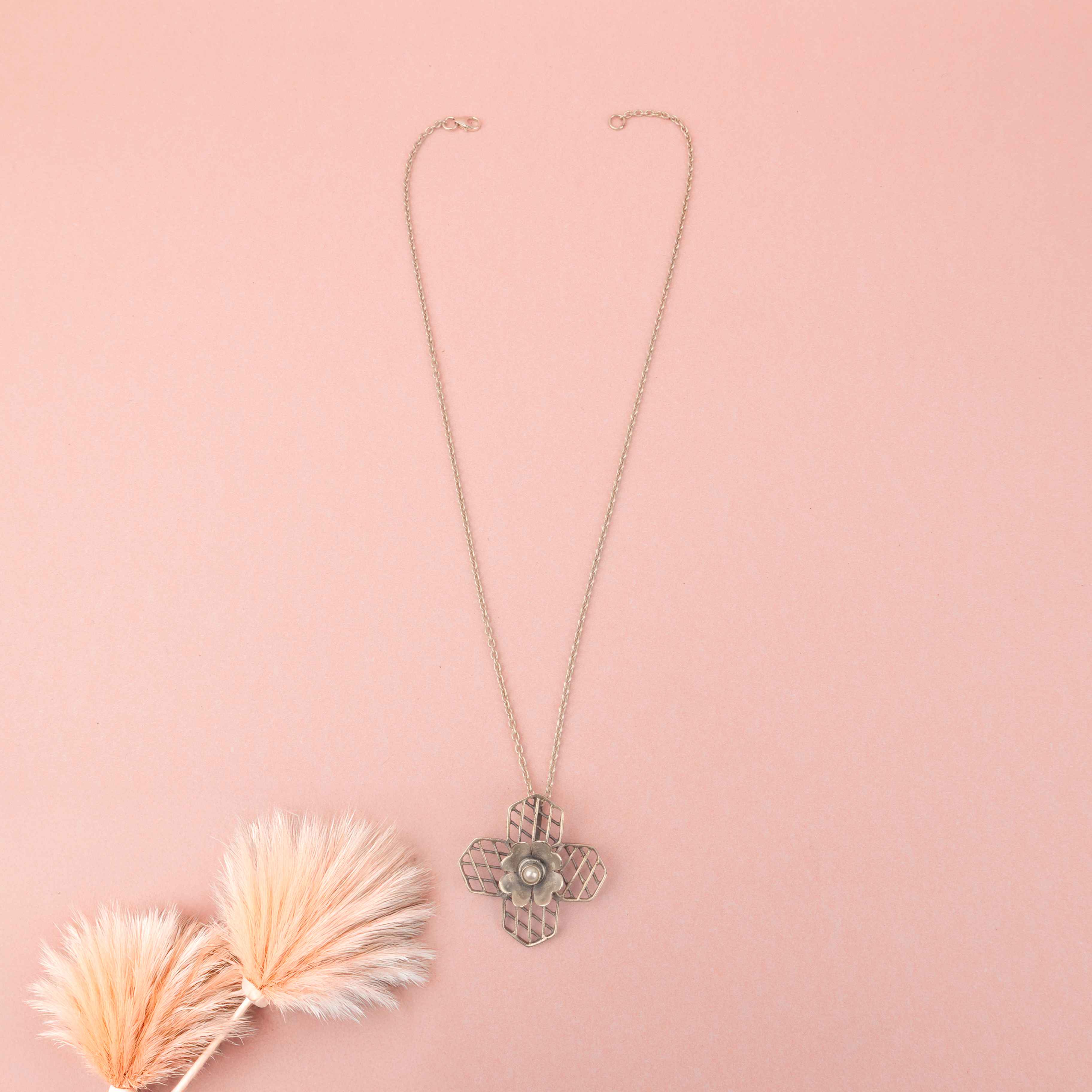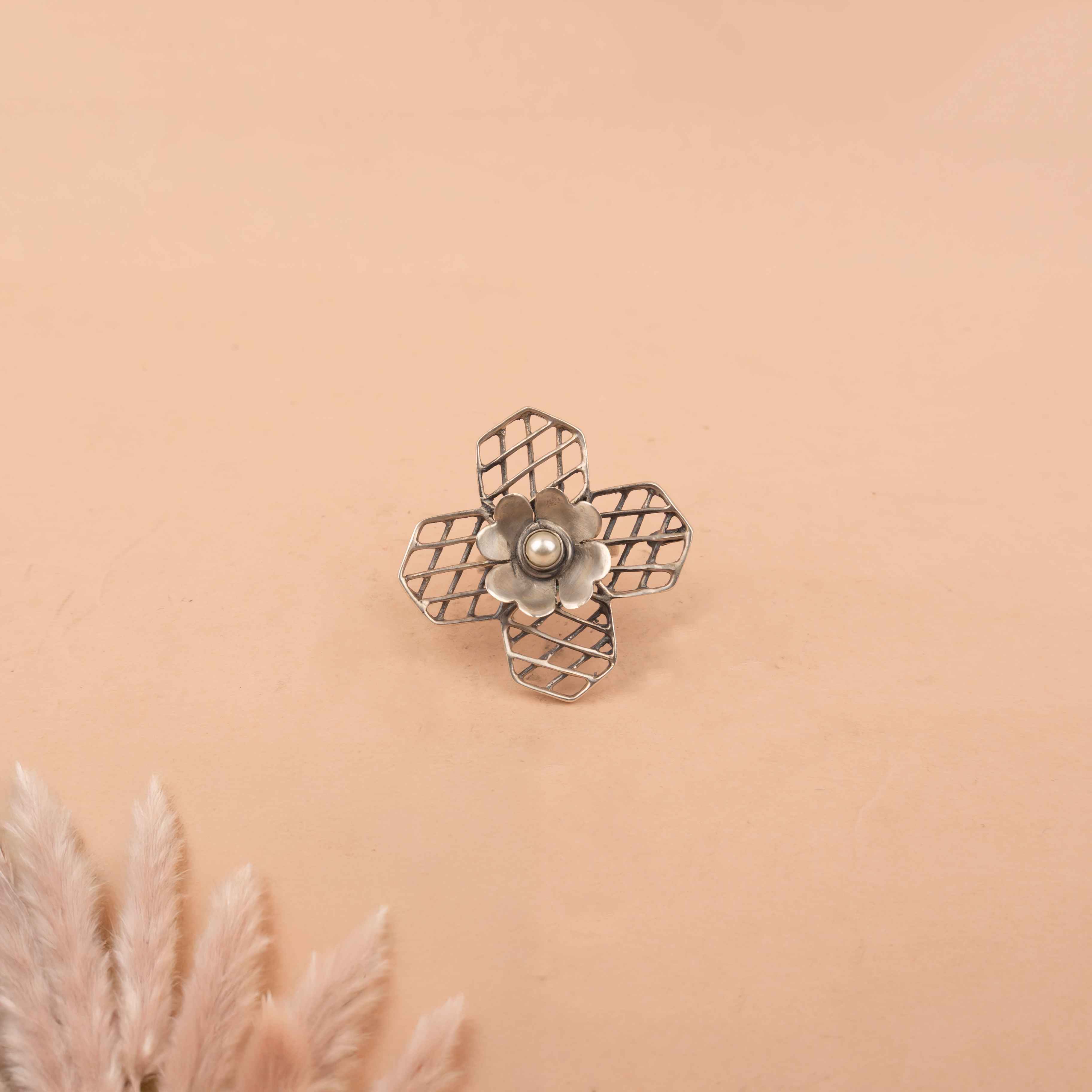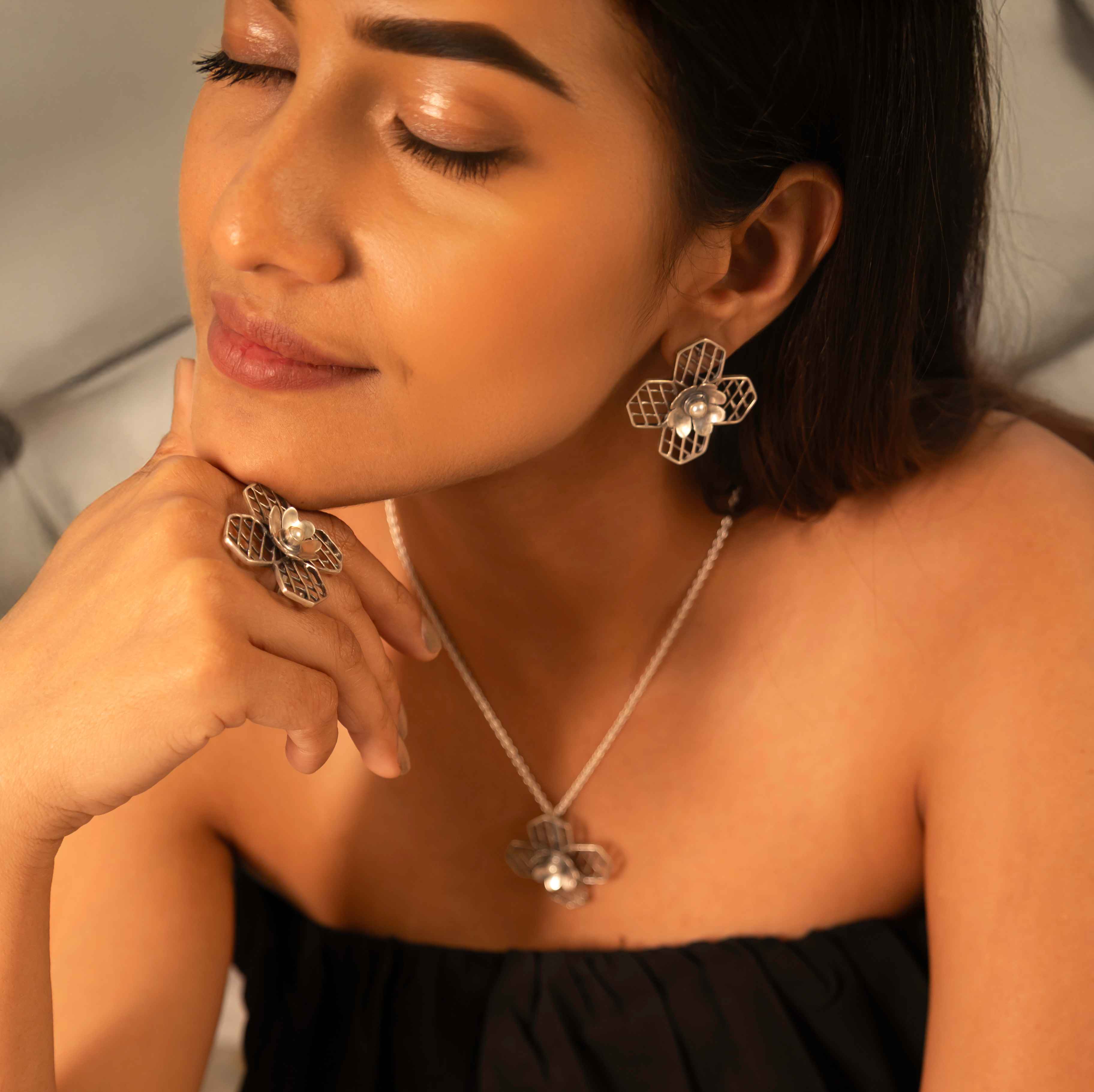 Mizoya Embossed Flower Jali Necklace Earring Ring set
