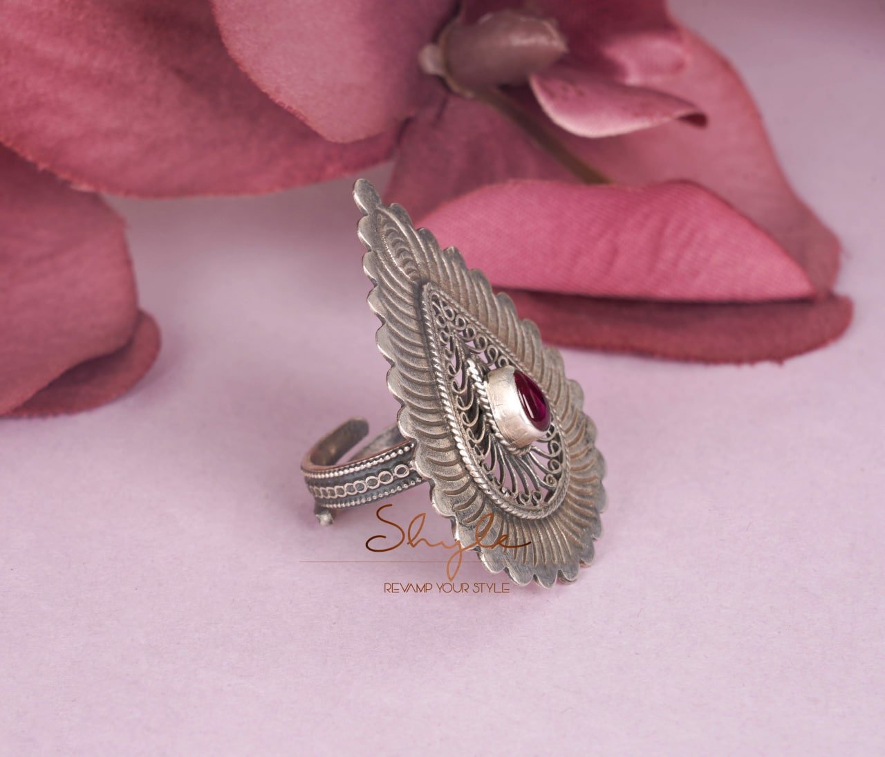THE SHYLE TIP : This statement set instantly elevates any look from casual chic to party ready. Style it with a simple black outfit to let the crescents steal the show, or pair it with ethnic wear for festive occasions. The ruby accents add just the right pop of color to make this your go to piece for both everyday glamour and special celebrations.