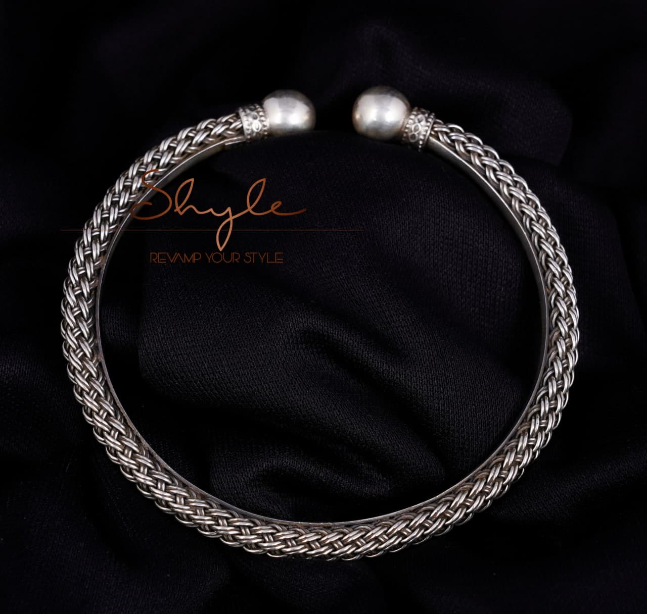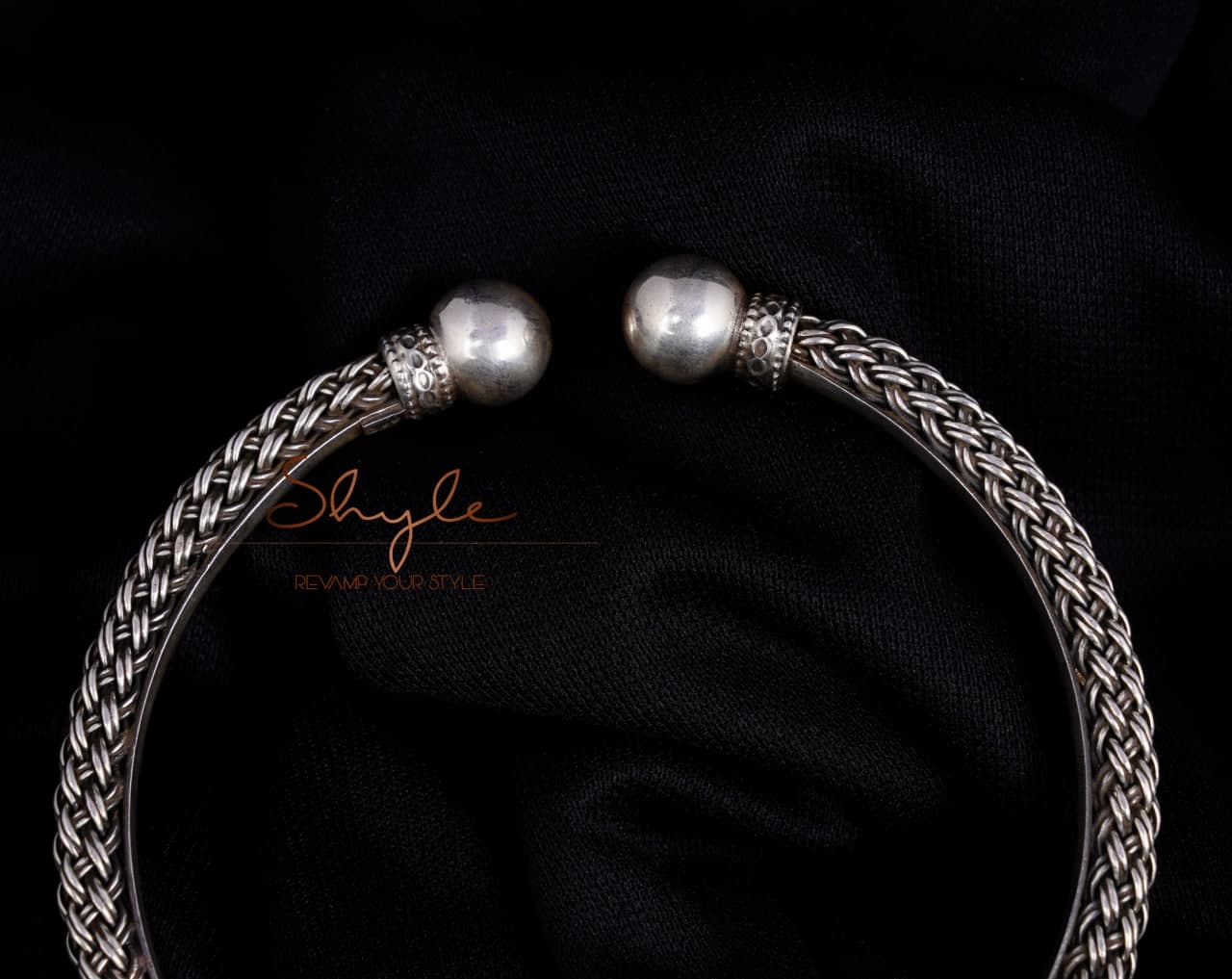 Elevate your elegance with the Mizoya Intricate Guthau Ball Ankle Kada, crafted for the woman who loves bold craftsmanship. Made from 92.5 silver, its intricate guthau weave and ball ends add a striking, timeless appeal to every step.