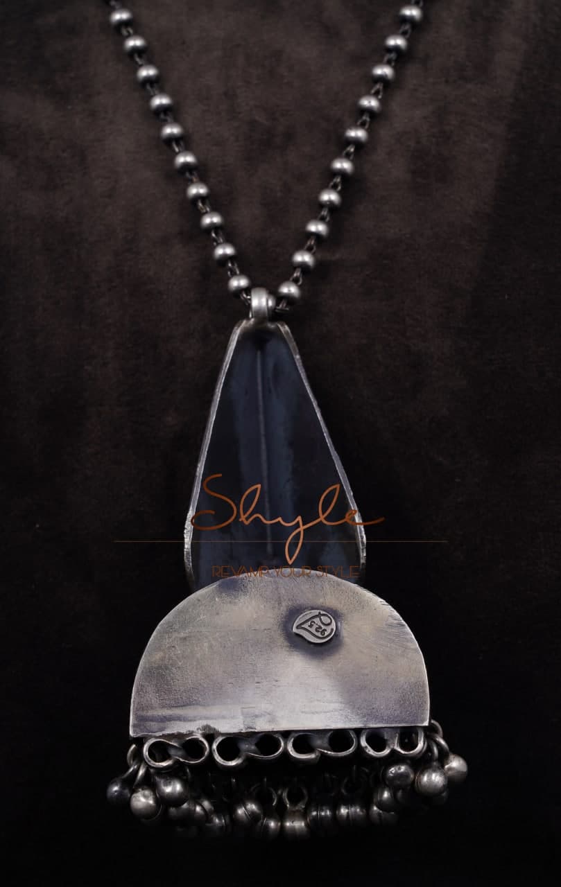 Mizoya Intricate Motif Embossed Jhumka Ball Chain Necklace