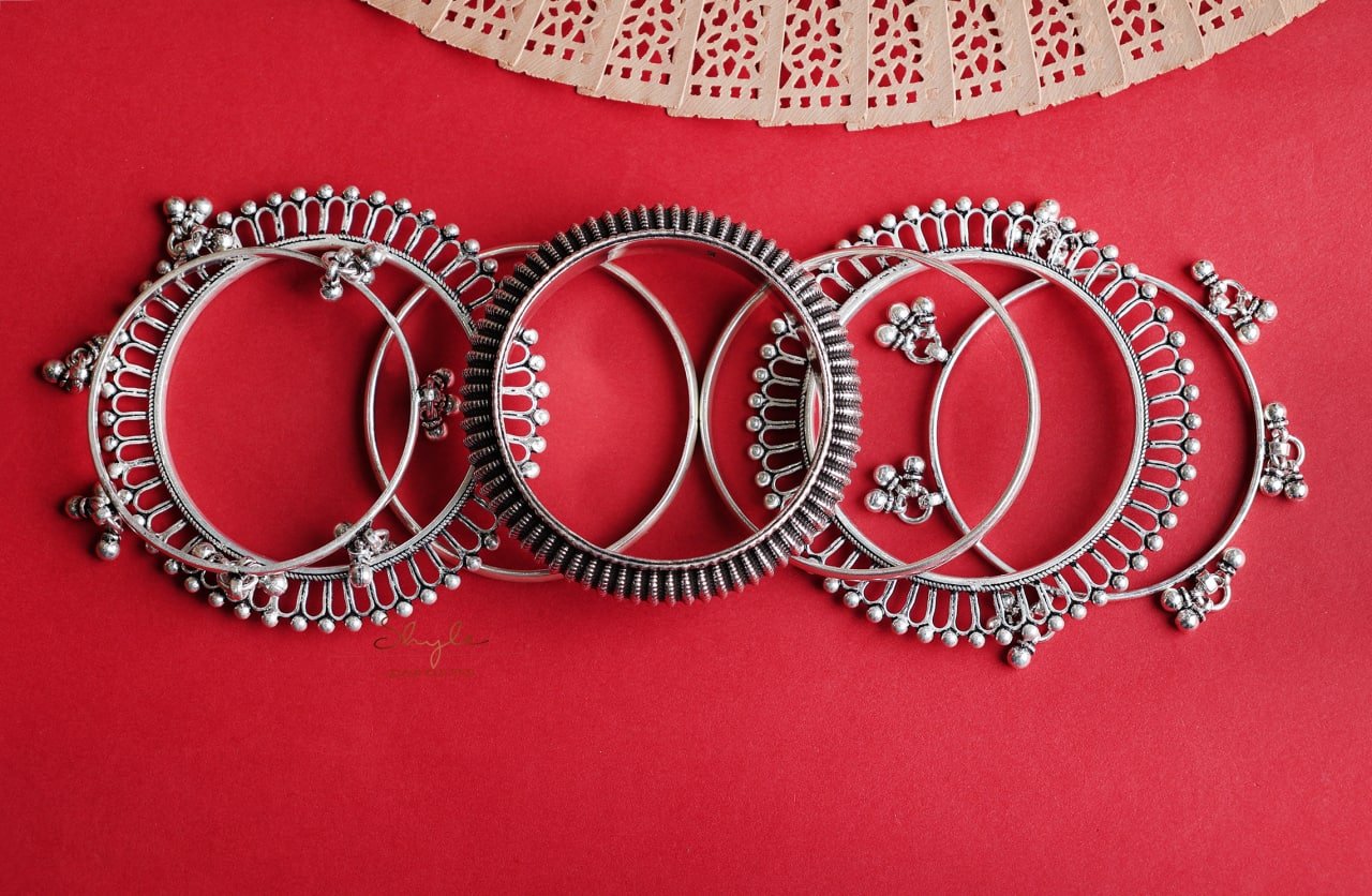Mizoya Line Embossed Carved Ghughri Bangle Set