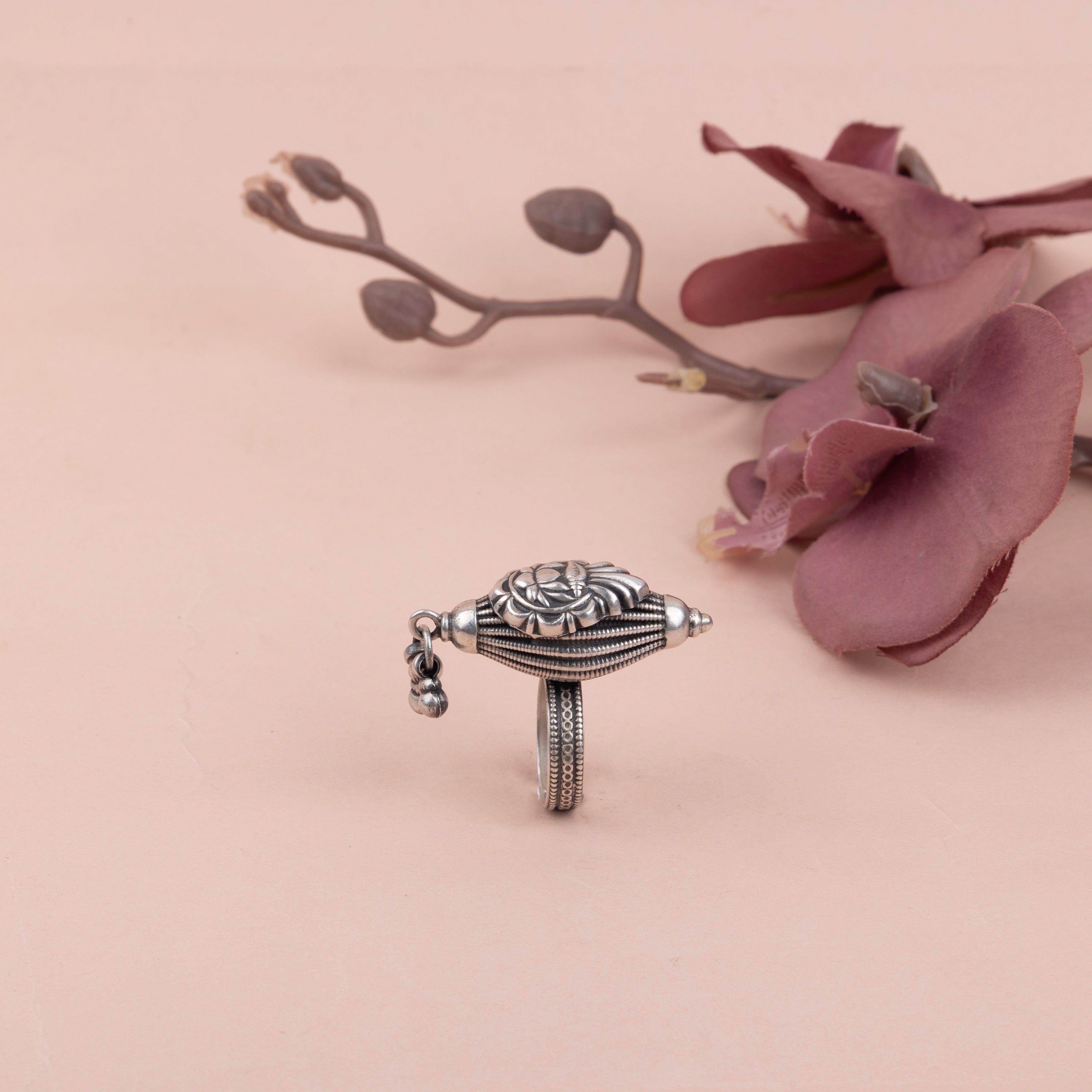 Mizoya Lotus Motif Classic Ghughri Drop Ring