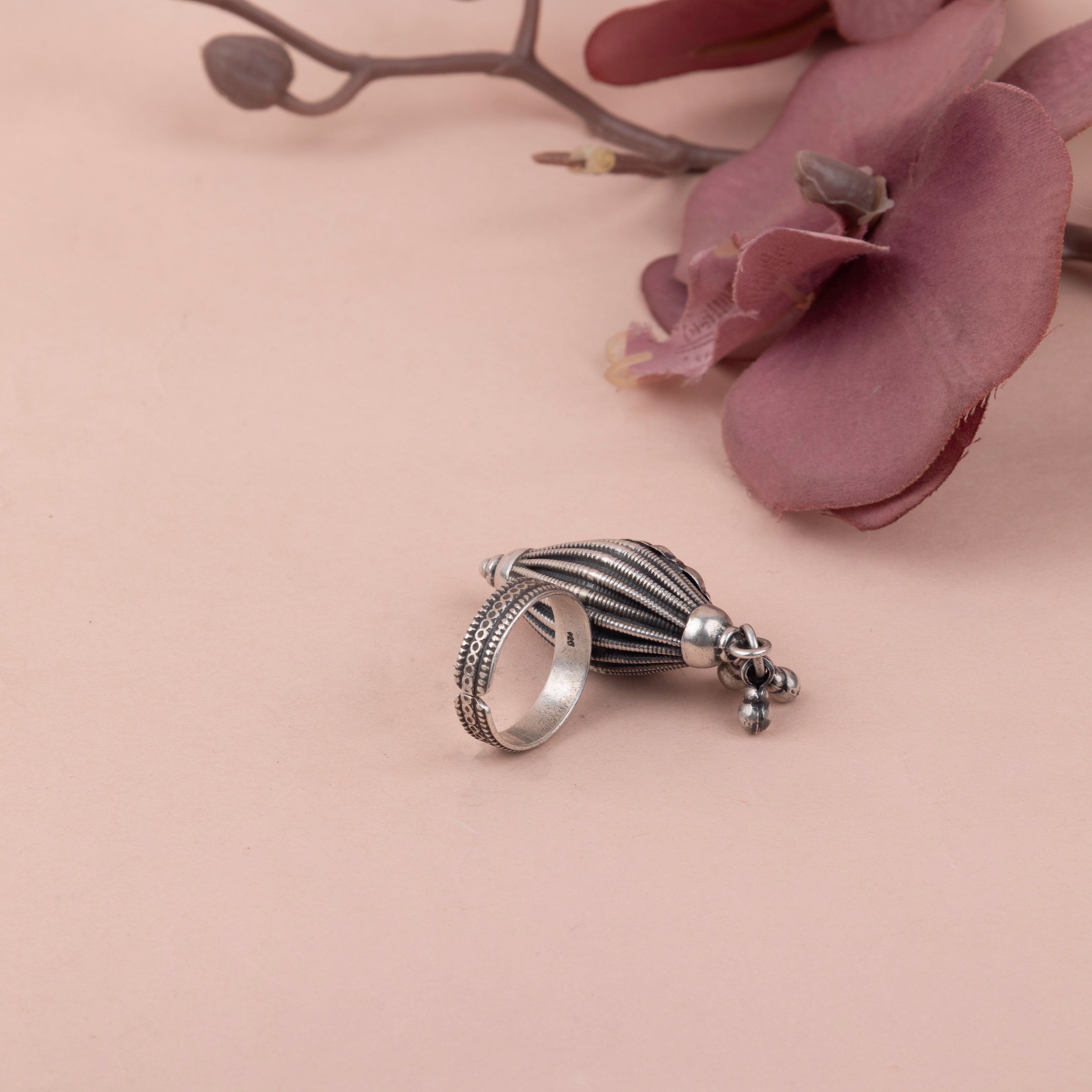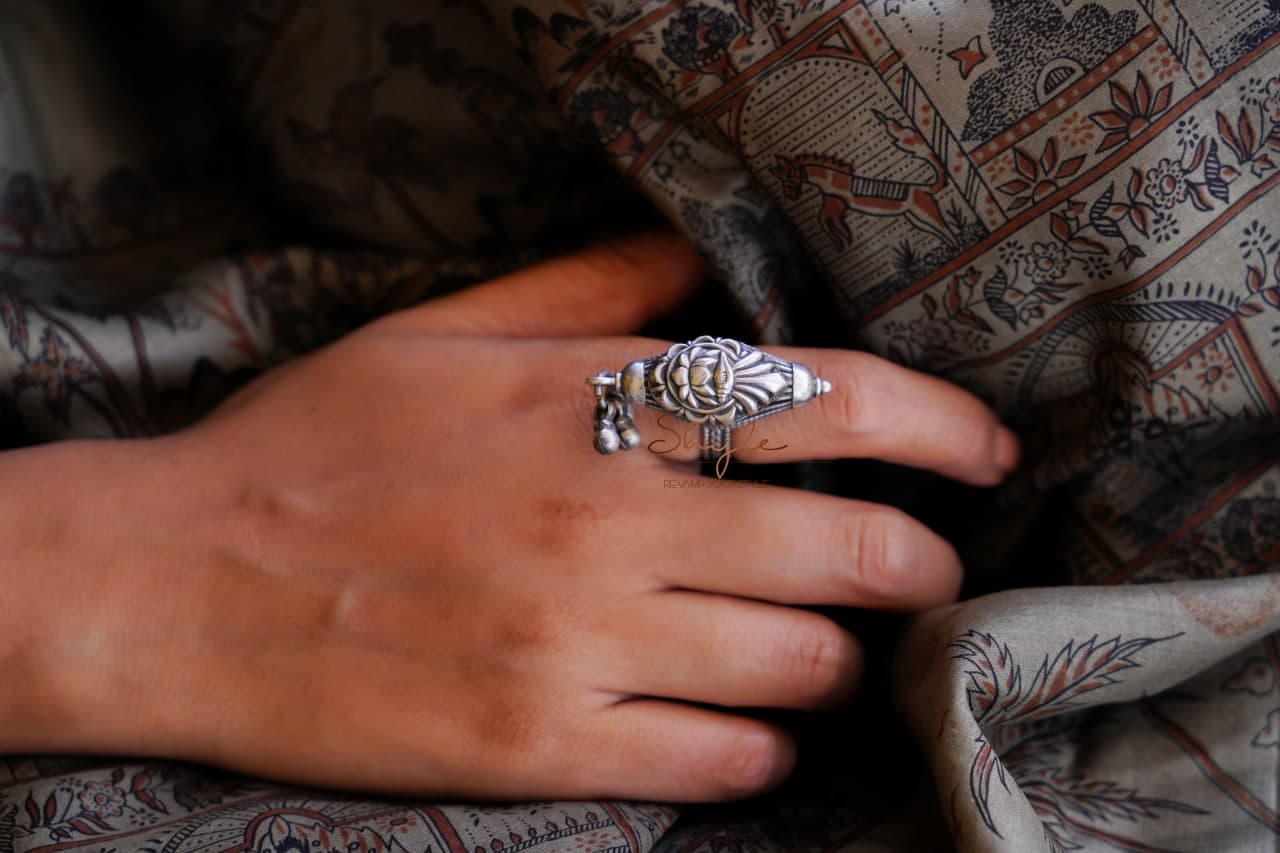 An amazing Mizoya Lotus Motif Classic Ghughri Drop Ring.