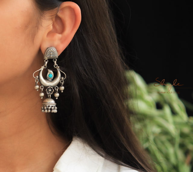 Mizoya Peacock Motif Crescent Motif Jhumki