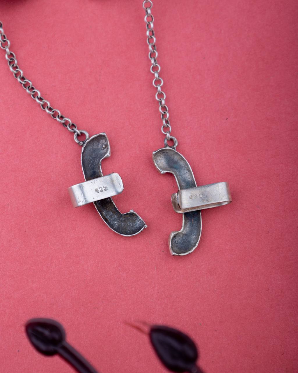 Step back in time with a quirky twist with our Mizoya Vintage Inspired Telephone Earcuff, a playful and uniquely designed piece that celebrates nostalgia. This captivating silver ear cuff and drop earring set is meticulously handcrafted from genuine 92.5 sterling silver, ensuring both artistic beauty and exceptional quality. The set features a miniature, intricately detailed rotary telephone design as the main drop earring, complete with the classic receiver and a textured dial pad. A delicate chain elegantly connects the receiver to a simple yet stylish ear cuff that gracefully embraces the upper helix, adding a touch of contemporary flair to the vintage charm. The oxidized finish lends these designer silver earrings an authentic, antique allure, highlighting their quirky details and making them a true conversation starter.