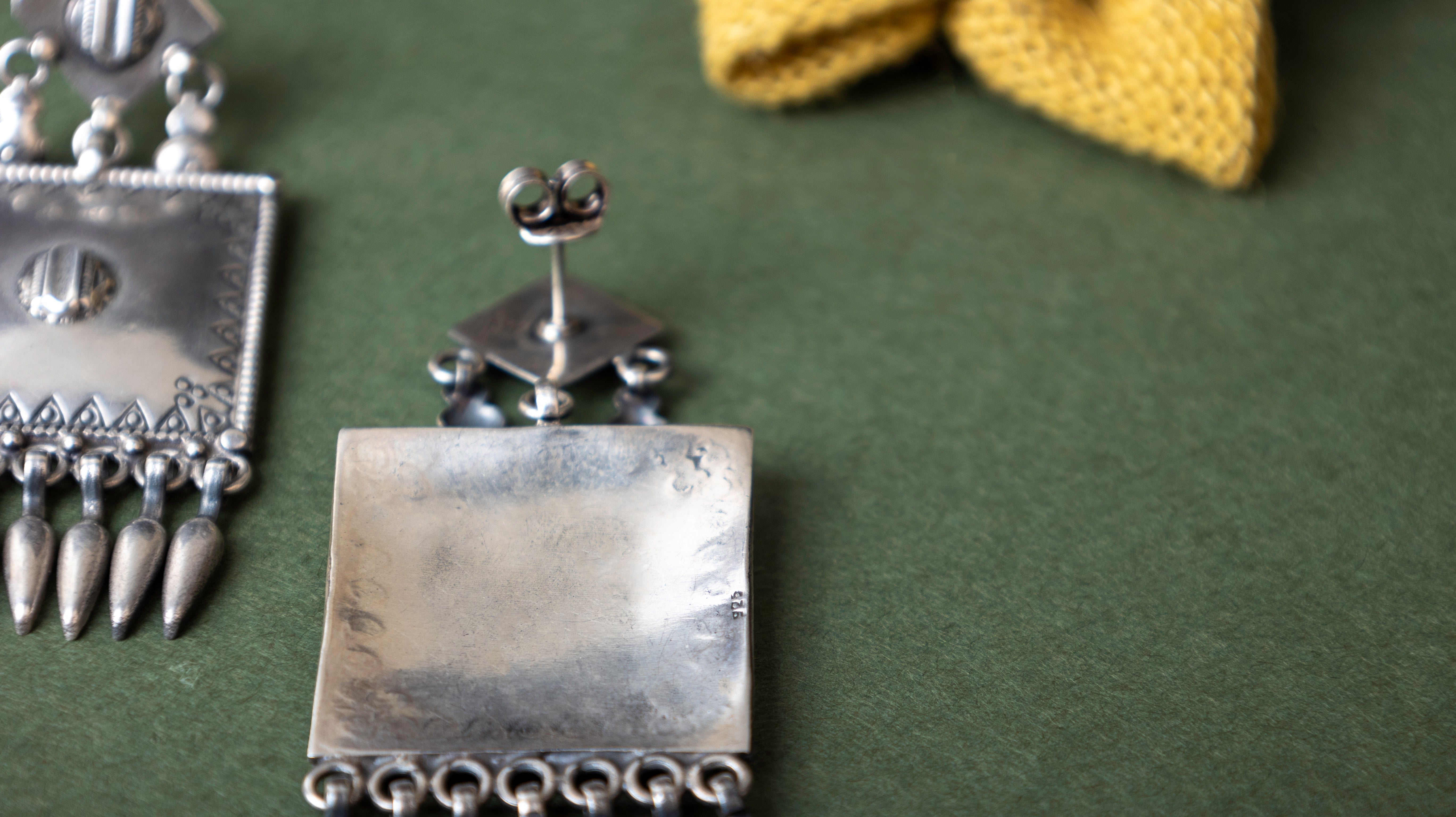 Embrace ancient artistry with the Mizoya Tribal Inspired Dangling Earrings, where traditional tribal craftsmanship meets contemporary sophistication. These striking earrings feature an ornate geometric stud that transitions into a beautifully detailed rectangular pendant adorned with intricate engravings and tribal motifs. The cascading fringe of delicate silver drops creates mesmerizing movement, while the oxidized silver finish adds depth and authenticity to the design. Perfect for the bold woman who appreciates indigenous art forms and wants to make a powerful cultural statement.