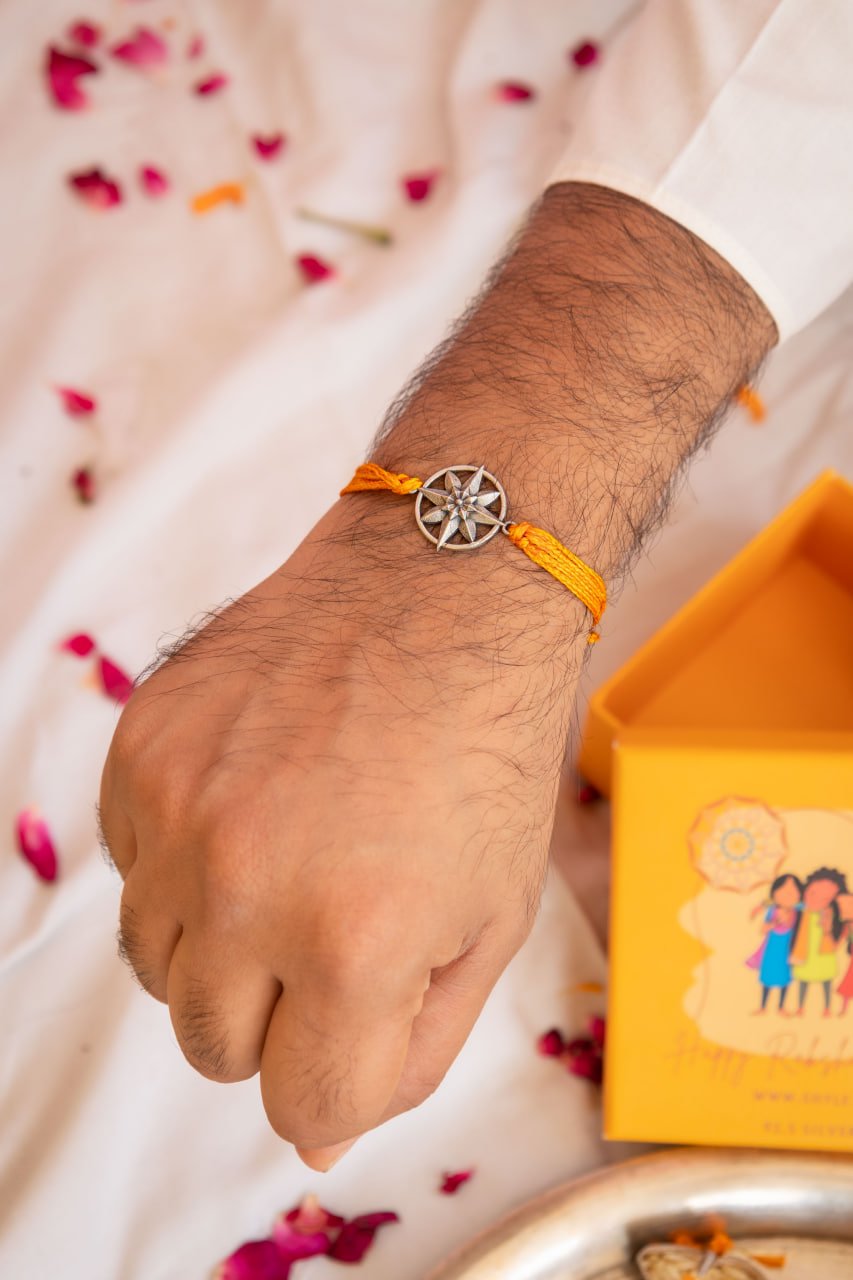 Our Moh Compass Wanderlust Rakhi captures the explorer's guiding spirit and transforms it into a beautiful celebration that honours the unwavering direction found in sibling relationships.