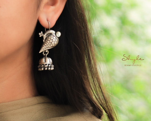 An amazing pair of Moh Inticate Peacock Fish Hook Jhumki