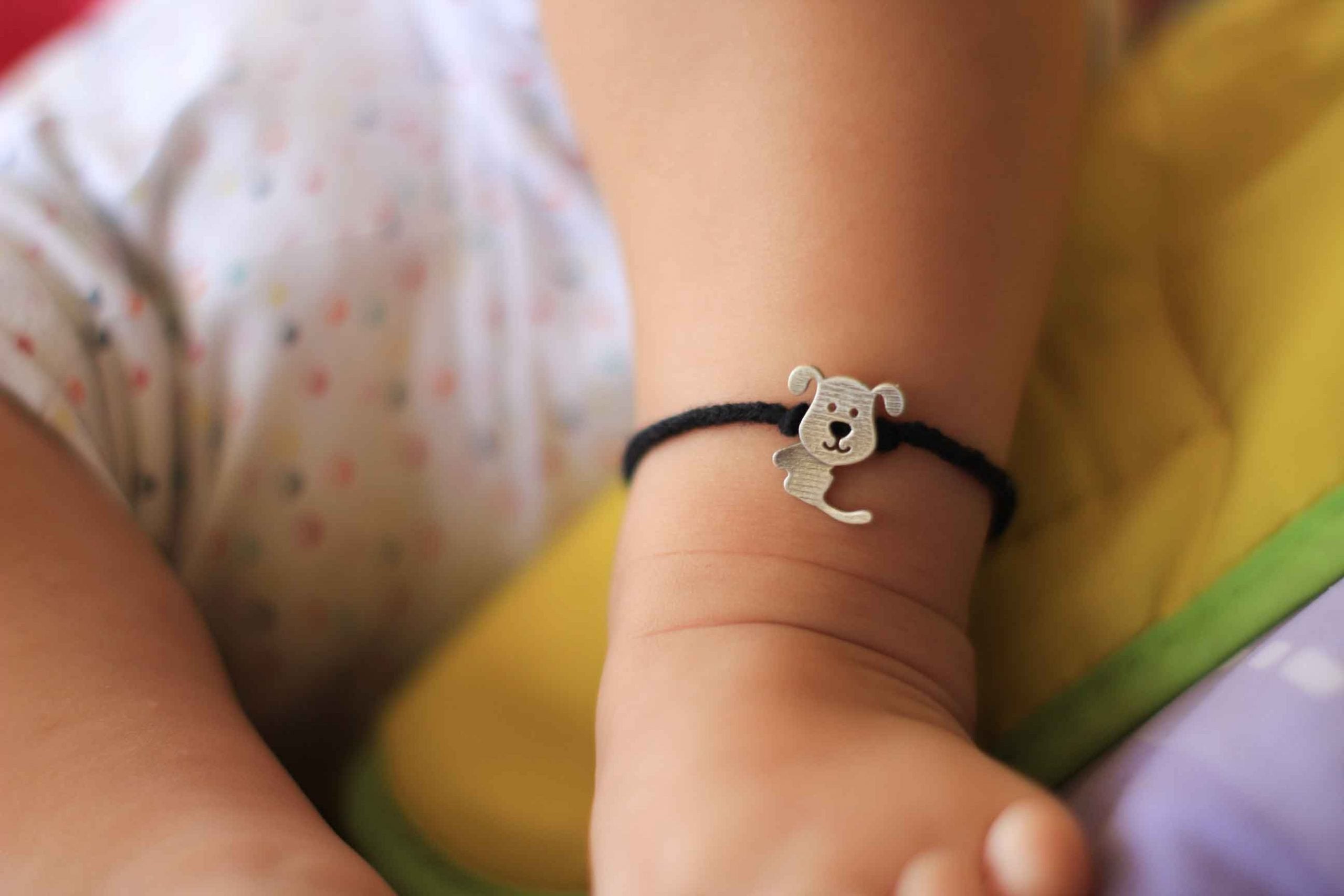 Crafted in 92.5 sterling silver, the Pup Nazarbattu features a charming puppy design combined with an intricate nazar (evil eye) motif, accented with a gemstone. Its whimsical craftsmanship and vibrant finish make it a standout piece for fashion jewelry. Perfect for elegant accessories and handcrafted silver items, this premium silver nazarbattu adds a touch of playful protection to any outfit, ideal for festive celebrations and casual styling.