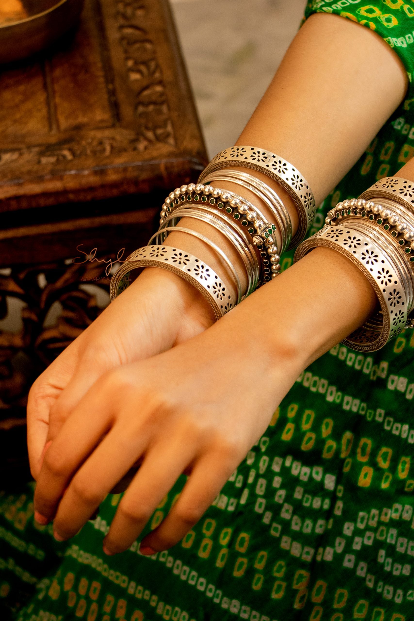 The Tattva Flower Carved Embossed Bangle Set features intricate flower carvings with embossed details, crafted through masterful handcrafted techniques using 92.5 silver. Inspired by the timeless beauty of traditional Indian jewelry, each element blends delicate floral elegance with enduring strength, creating a piece that feels both classic and modern.