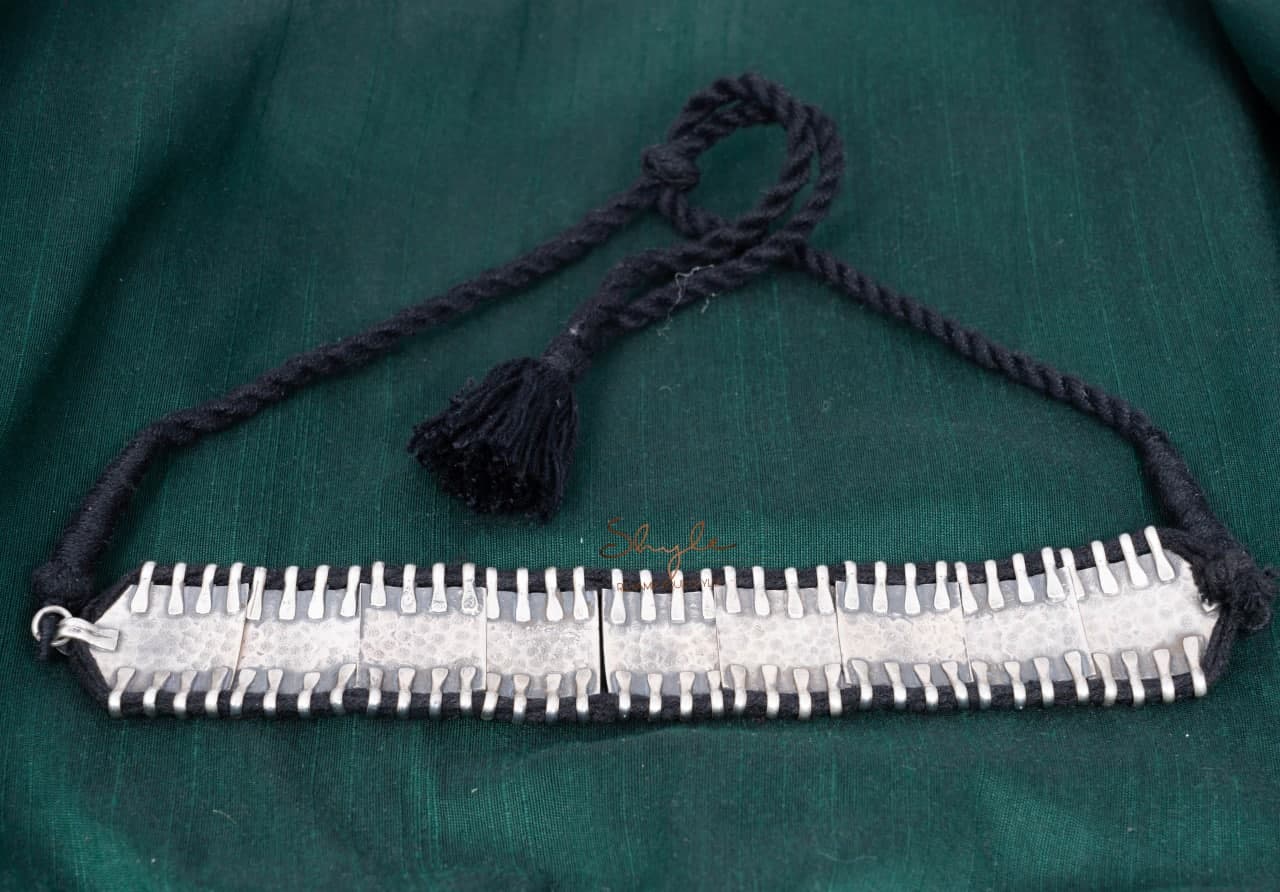 Where modern elegance meets timeless mystery, our Tattva choker transforms your neckline into a canvas of captivating shadows and light. The intricate textured surface creates mesmerizing depth that shifts with every glance, while the sleek silhouette adds instant sophistication to any look. This isn't just jewelry - it's your secret weapon for effortless allure. "Tattva" meaning hidden essence, this choker reveals just enough to leave them wanting more.