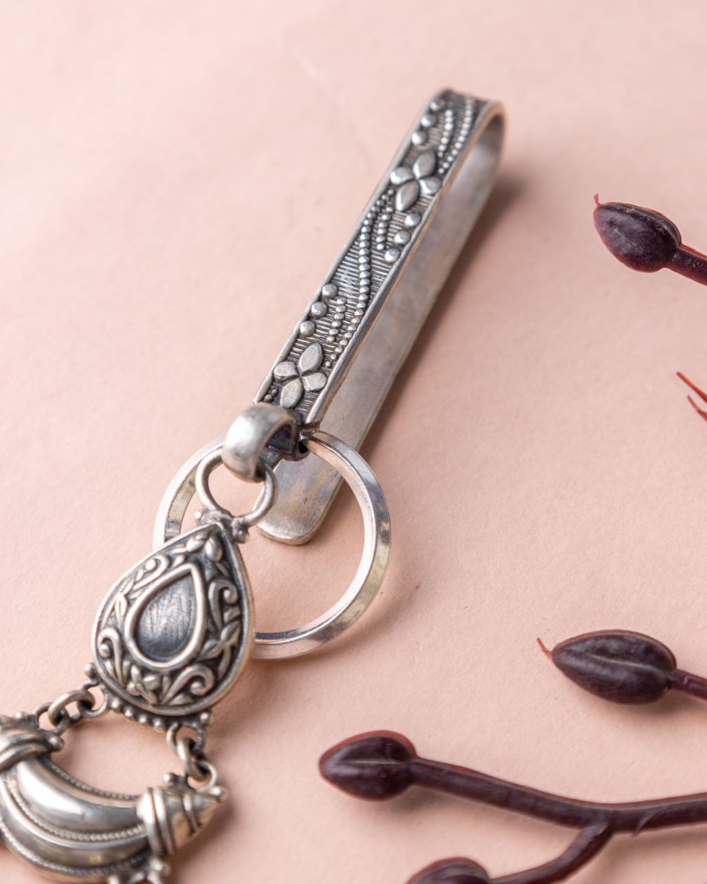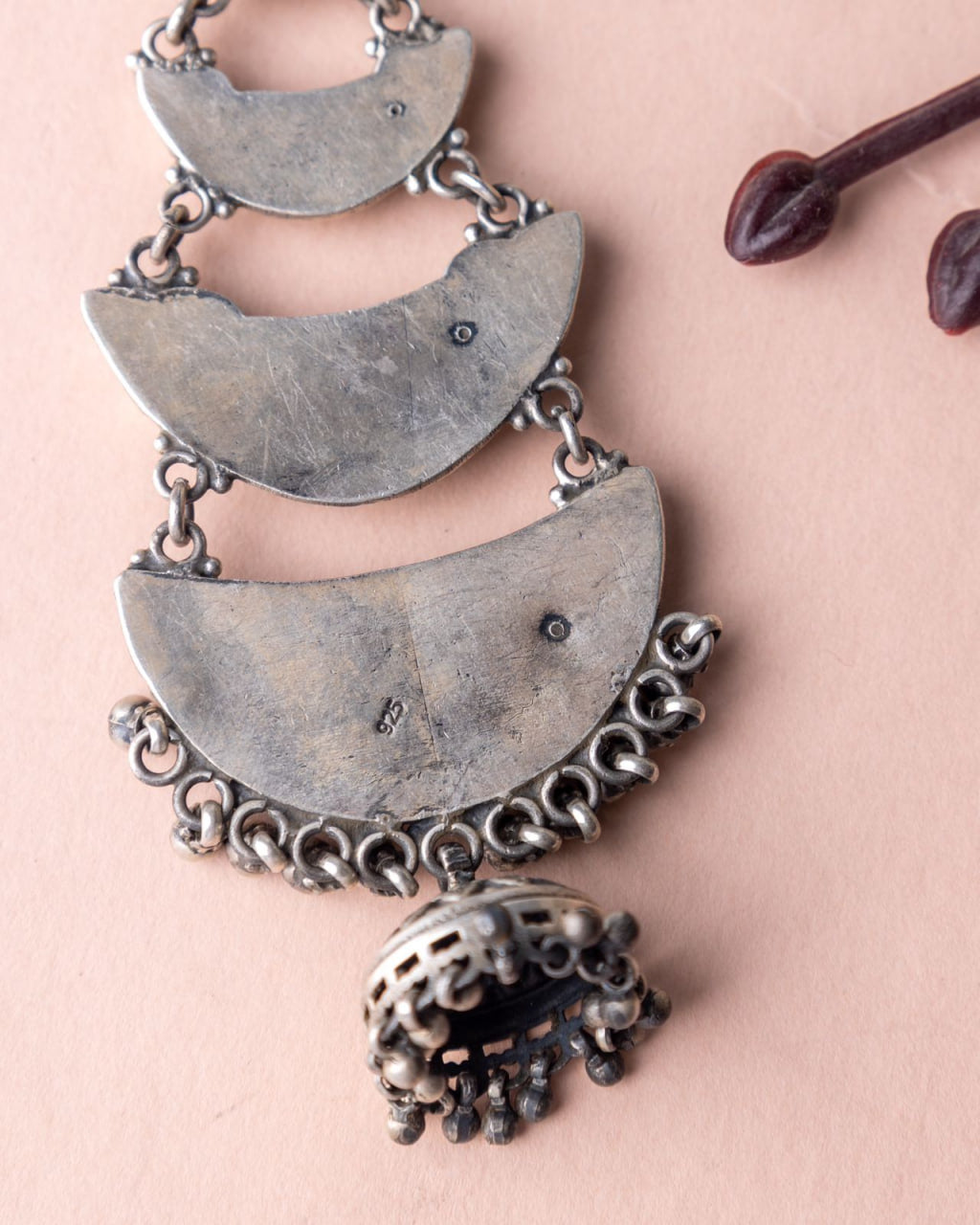 The Tattva Statement Layered Ghughri Satka showcases striking layered ghughri (bell) designs that chime with light, crafted through masterful craftsmanship. Inspired by the resonant elegance of royal palace bells, each detailed element blends bold beauty with enduring strength, creating a piece that feels both timeless and strikingly modern.