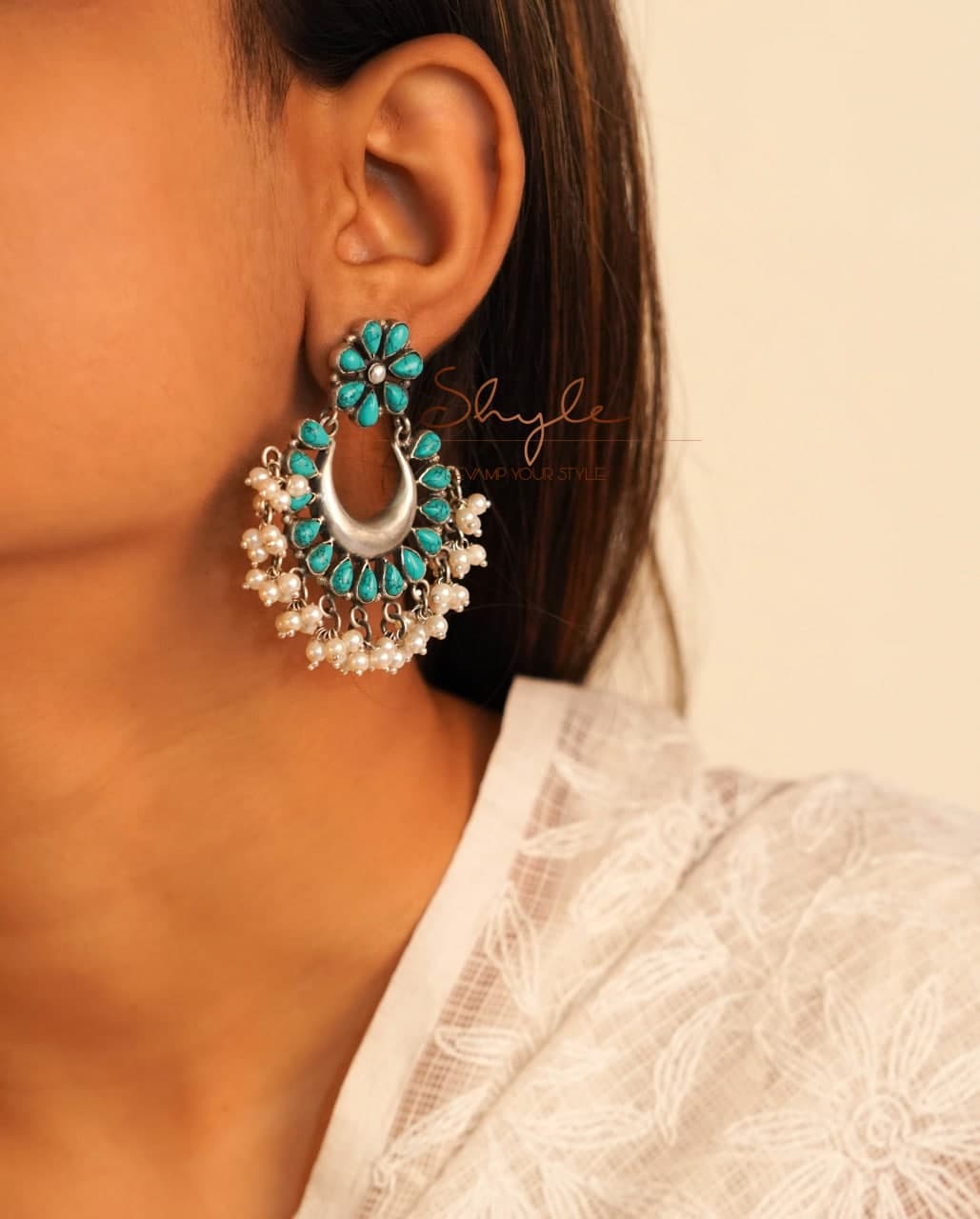Tattva Turquoise Pearl Timeless Chandbali