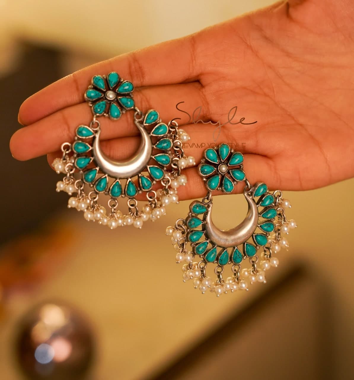 An amazing pair of Tattva Turquoise Pearl Timeless Chandbali